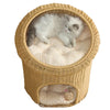 Dieses stilvolle Katzenhaus aus geflochtenem Rattan bietet alles, was Katzen lieben: eine gemütliche Höhle zum Zurückziehen, ein erhöhtes Aussichtsplätzchen zum Dösen und ein kleines Spielzeug für zwischendurch. Ob für ein Nickerchen oder zur Beobachtung des Wohnzimmers – hier fühlt sich jede Samtpfote pudelwohl!